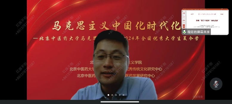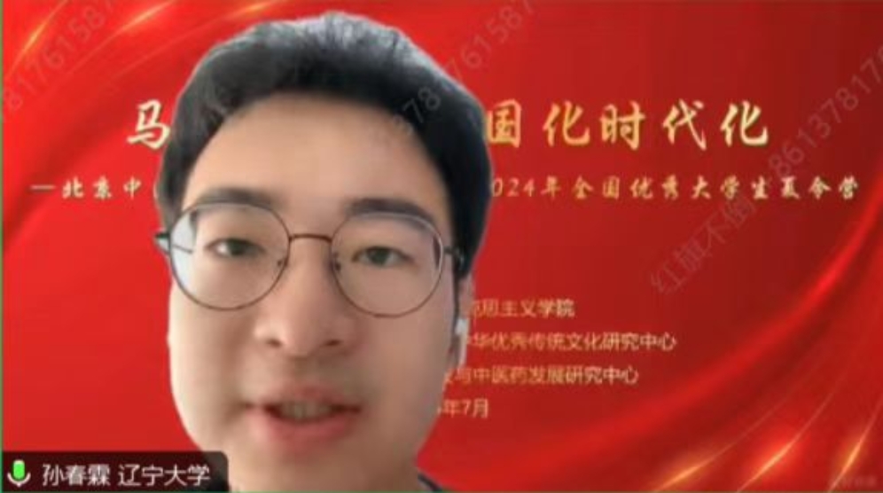 之后夏令营学员代表孙春霖同学发言,他首先向学院和老师们表示感谢,结合学院的办学特色与自身的兴趣点,从“第二个结合”与中医药文化传承创新发展的方面,对夏令营的学习满怀期待。