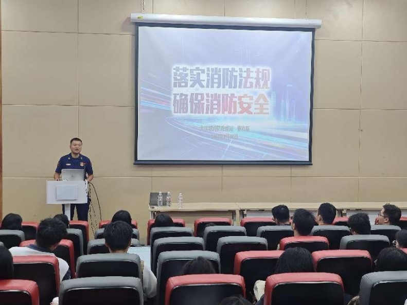 随后,大学城消防救援站的曹岩磊警官做消防安全教育,他结合真实案例详细解读了相关消防法律法规,并呼吁大家增强消防意识,积极落实消防安全要求,以实际行动筑牢校园消防安全屏障,切实保障生命和财产安全。