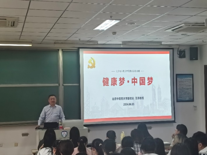 王停副董事长为同学们带来了一堂深入阐发习近平新时代中国特色社会主义思想、紧密结合中医药专业实际的思政课。同学们在王停副董事长的讲授引领下,结合中医药行业的生动实践,深入理解了课程理论知识,进一步增强了“四个自信”。