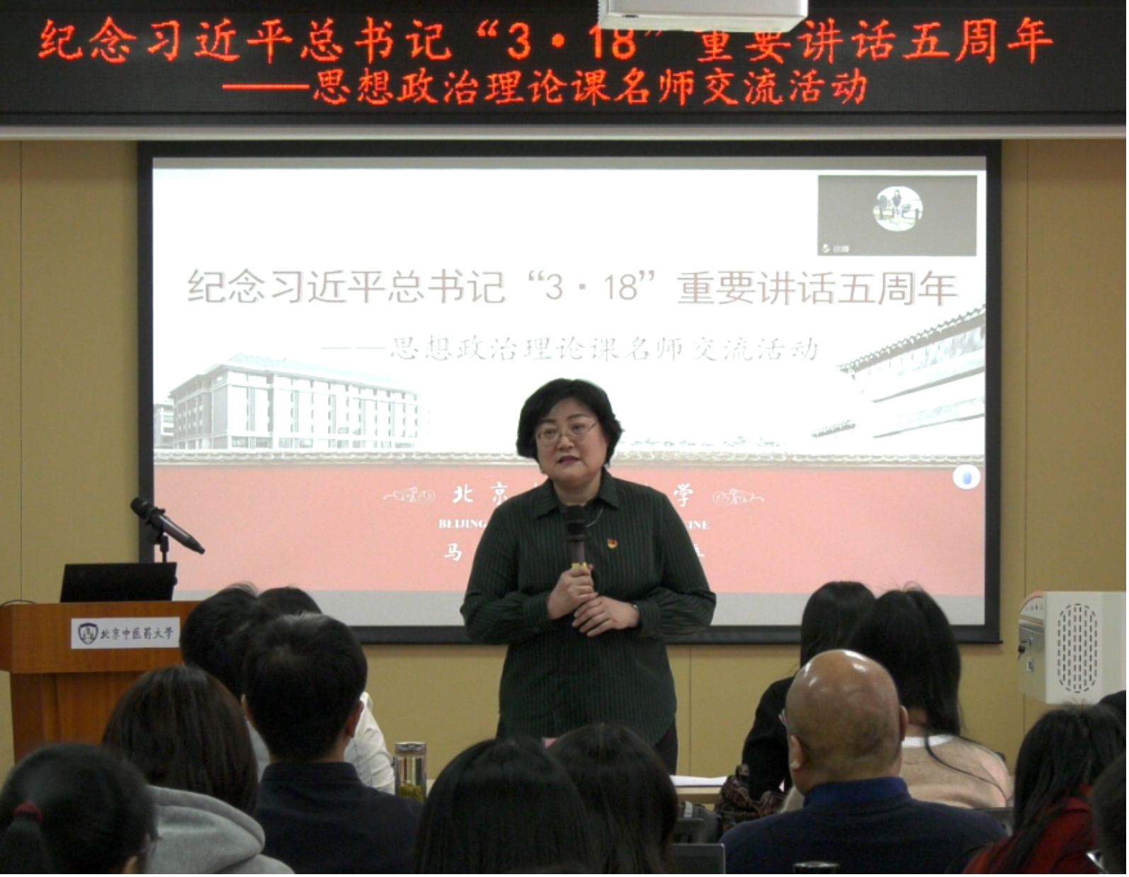 马克思主义公司党委书记、副经理李玮教授进行活动致辞。她对于文博教授的到来表示热烈欢迎。她指出,五年来公司党委坚持以习近平新时代中国特色社会主义思想为指导,在党组织建设、课程建设、团队建设、队伍建设、人才培养等方面取得了显著成效。未来将继续以“3·18”重要讲话作为行动指南,持续强化队伍建设,提升思政课公司产品工作质量。