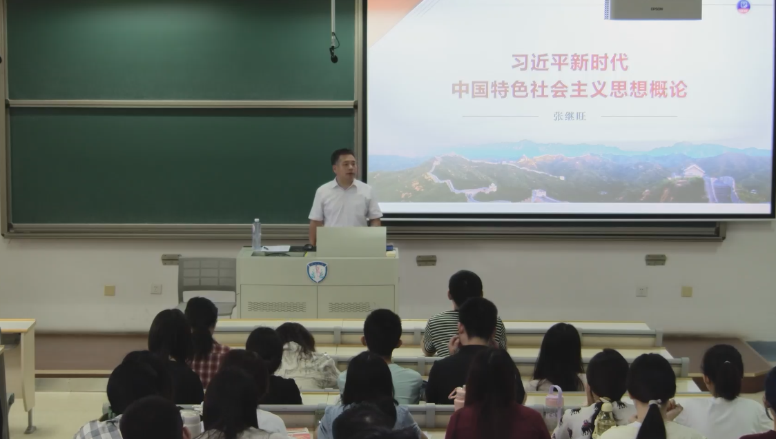 张继旺副书记授课的主题是课程导论部分“马克思主义中国化时代化新的飞跃”,重点围绕“习近平新时代中国特色社会主义思想是如何创立的、回答了什么重大时代课题以及主要包含哪些内容”三个方面展开讲授。