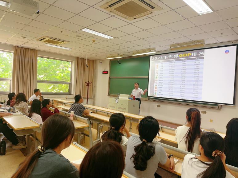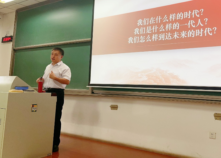 张继旺副书记开篇以“我们在什么样的时代?我们是什么样的一代人?我们怎么样到达未来的时代?”三个问题导入,引发同学们的深入思考。他从历史维度对中华民族伟大复兴的深刻内涵予以解读,用详实数据展现改革开放以来特别是新时代以来的辉煌成就,并结合亲身经历的实际案例,以小见大地分析新时代社会主要矛盾的变化,引导同学们深刻认识时代的伟大变迁与党领导中国人民展开伟大实践的内在联系,深刻认识学习掌握习近平新时代中国特色社会主义思想的重要性。