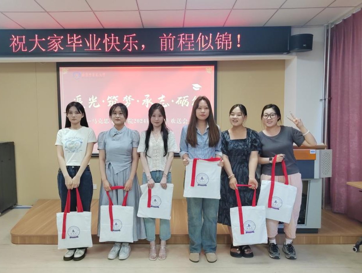 毕业生们回顾了自己三年来的在校经历和收获,对学院领导和老师在学业、生活和求职上的指导关怀表示感谢。围绕学院的建设发展,毕业生们也提出了一些建议。随后,毕业生导师和班主任逐一发言,老师们首先对大家顺利毕业表示祝贺,同时勉励同学们不忘初心,保持奋斗的精神和勇气,在未来的事业中争取更大的进步,彰显马院学子的担当。老师们代表学院为毕业生赠送临别礼物,祝福大家万事胜意,一路繁花。