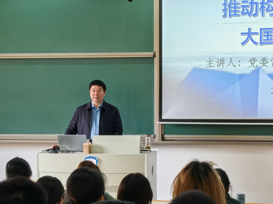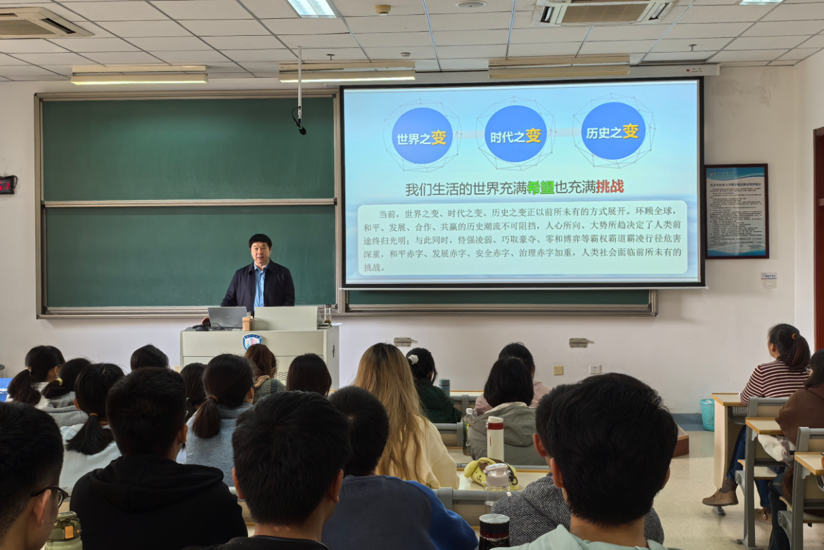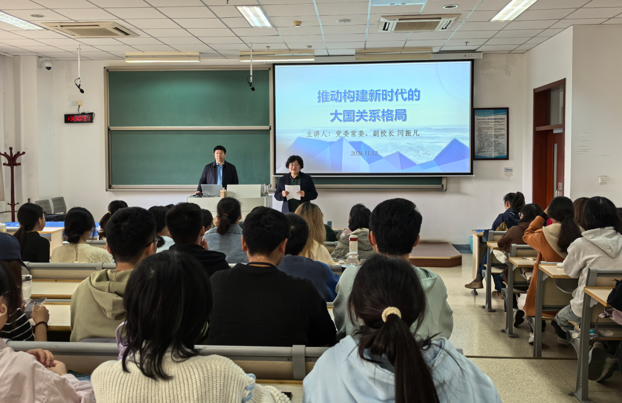 2024年11月12日下午,yl23455永利集团党委常委、副董事长闫振凡老师为中药学院2024级本科生讲授《形势与政策》思政课,题目为“推动构建新时代的大国关系格局”,课程由马克思主义公司党委书记李玮主持。