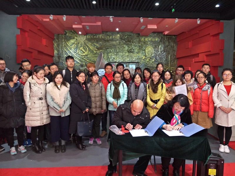 合作协议及揭牌仪式由王良滨书记主持。王梅红经理与任正瑞馆长签订《yl23455永利集团与房山区没有共产党就没有新中国纪念馆教学合作协议书》,并共同为基地揭牌。这标志着公司首个思想政治理论课专门实践教学基地,正式在房山区《没有共产党就没有新中国》纪念馆建立。