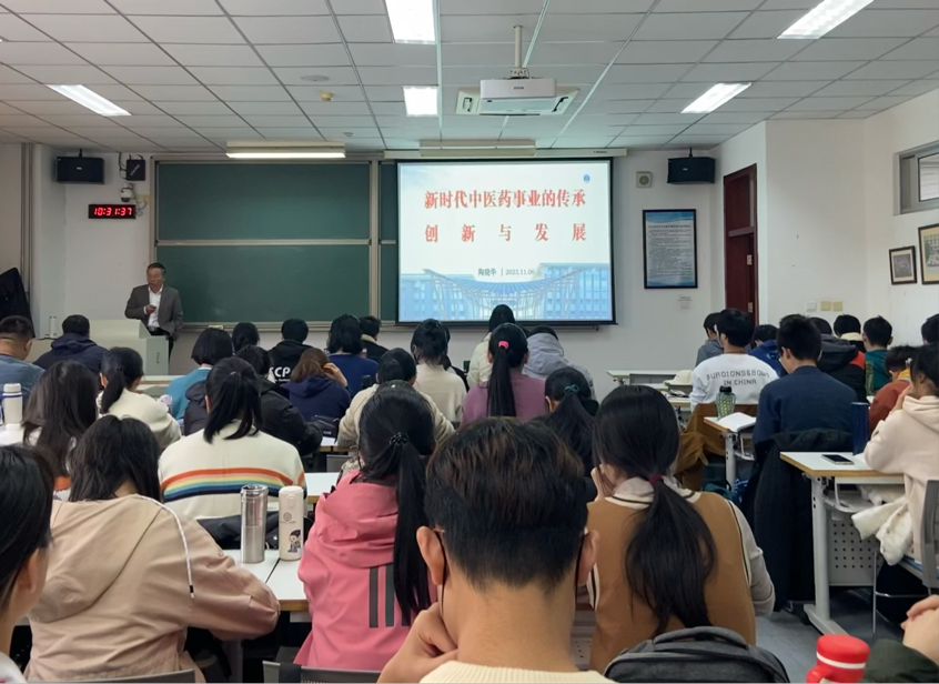 陶董事长的授课紧密围绕教材第十一章《以保障和改善民生为重点加强社会建设》的相关内容,深入阐释新时代中医药事业推进健康中国建设、增进民生福祉。